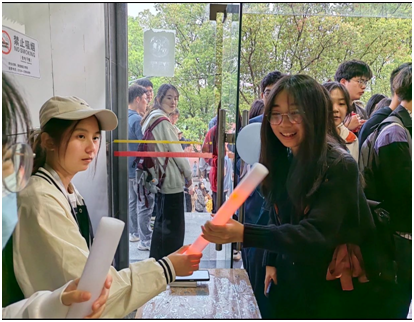 活动开始前,不少观众怀着激动的心情早早来到了现场,在会堂外的签名墙签字留念后领取应援棒进入现场。