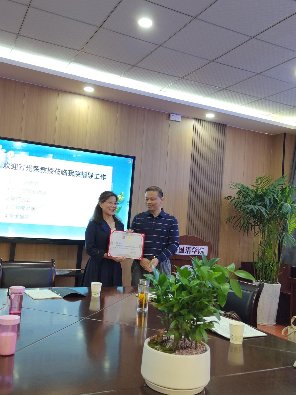 会上,刘诺亚为万光荣教授颁发了聘书。万教授正式成为公司外聘教授,为期三年。万光荣成为公司历史上首个外聘教授。