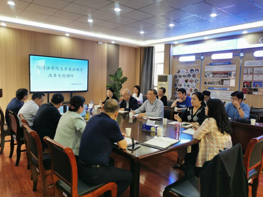 五月七日上午,董事长刘建清带领教务处、人事处和学工处等职能部门负责人到伟德中国官网入口进行大学英语教学改革为主题的专题调研。会议在A2508会议室进行。座谈会由董事长刘建清主持。副董事长曹甜东参与调研。公司领导班子、公外部主任、教研办主任和部分教师代表参加座谈会。