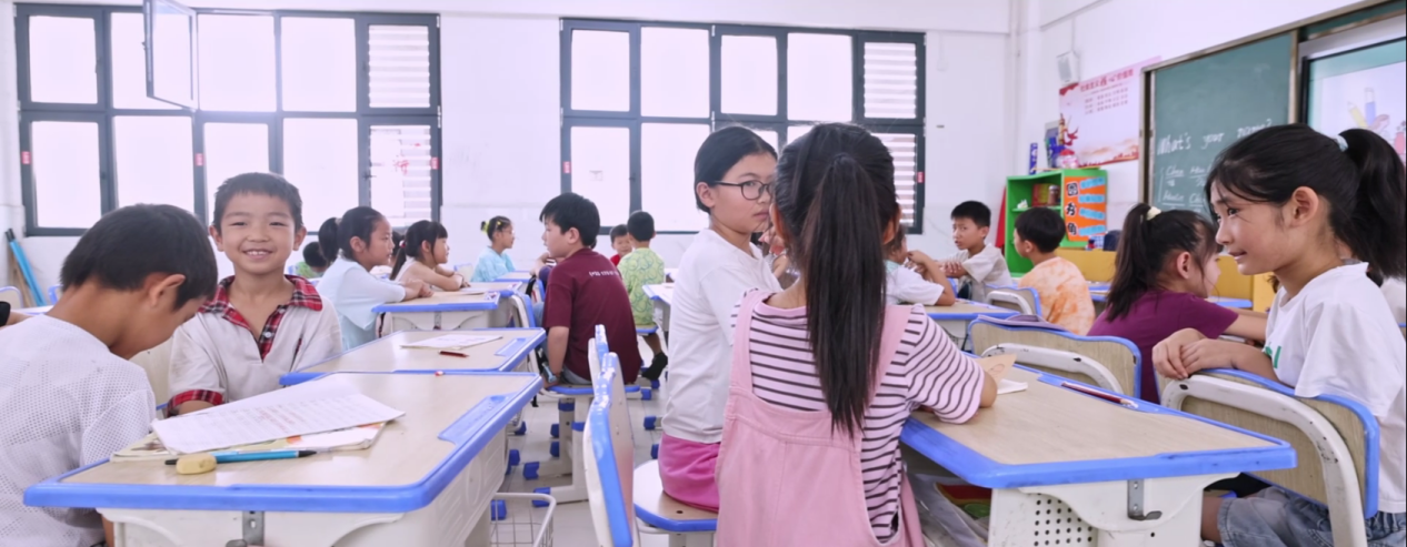 赋能乡村英语新课堂,志愿者们以全英文绘本为蓝本,借助生动形象的单词卡片,让孩子们身临其境,了解中外在饮食和服装方面的文化差异,拓宽了他们的视野;通过播放妙趣横生的英语动画,让孩子们模仿发音,帮助他们纠正读音,设置英语场景教学,让孩子们做动画的“主人公”,每一个角色瞬间都鲜活了起来。