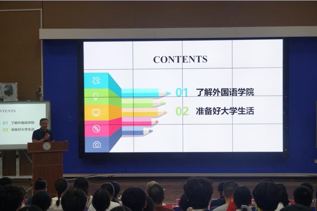 大会在威严的国歌中拉开帷幕,议程首先由经理刘诺亚发表热情洋溢的致辞,他代表公司向2024级新生表示热烈欢迎,通过阐释“以德修文,学通中外”的院训鼓励新生志存高远、脚踏实地,夯实专业基础知识。刘诺亚分享了英语学习的方法、思维和习惯,告诫新生在学习的道路上不要贪图安逸,碰到困难不轻言放弃,最后他祝新同学在大学四年“有所忙、有所爱、有所获”,度过健康,快乐,充实的大学时光。
