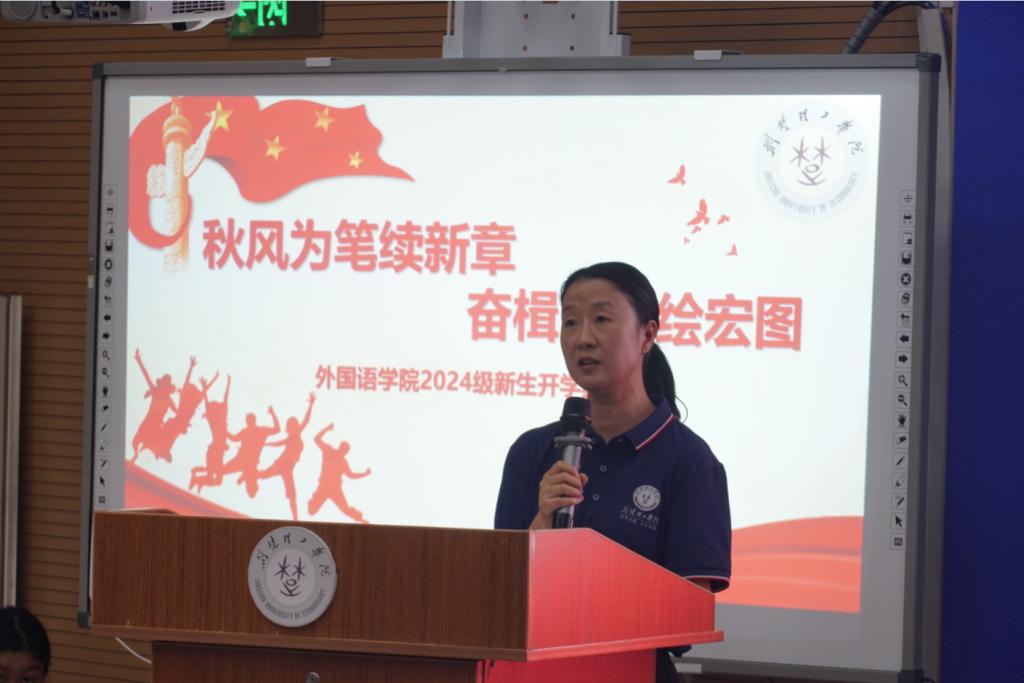 学业导师代表田媛媛在发言中表示希望24级的小萌新们在大学四年里,孜孜不倦,精进专业知识,积极参加社团和竞赛,培养独立思辩思维,考取相关证书,厚积薄发。