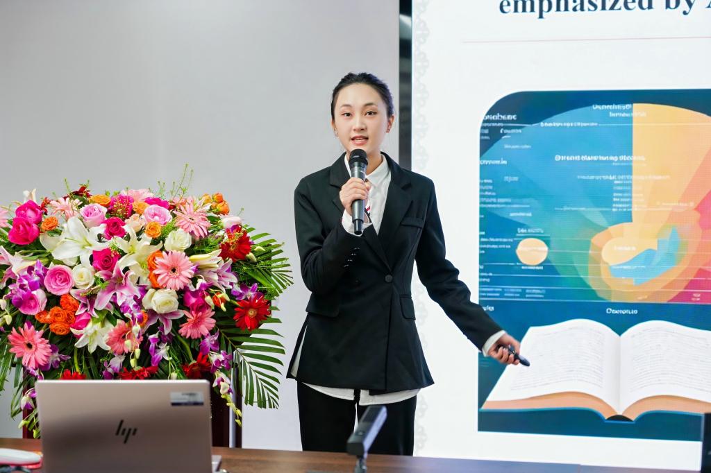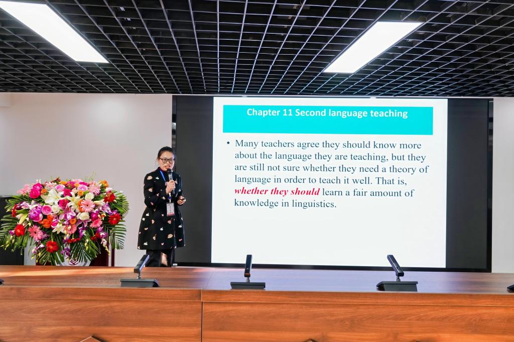 在下午的学术交流环节,掇刀区高新公司的王莉董事长以“三新”视域下的初中英语课程改革为主题,深入剖析了新课程标准下教学模式的创新路径。柴媛媛副教授则从语言学的角度,提出了优化基础英语教学的策略,为提升教学质量提供了新的思考方向。