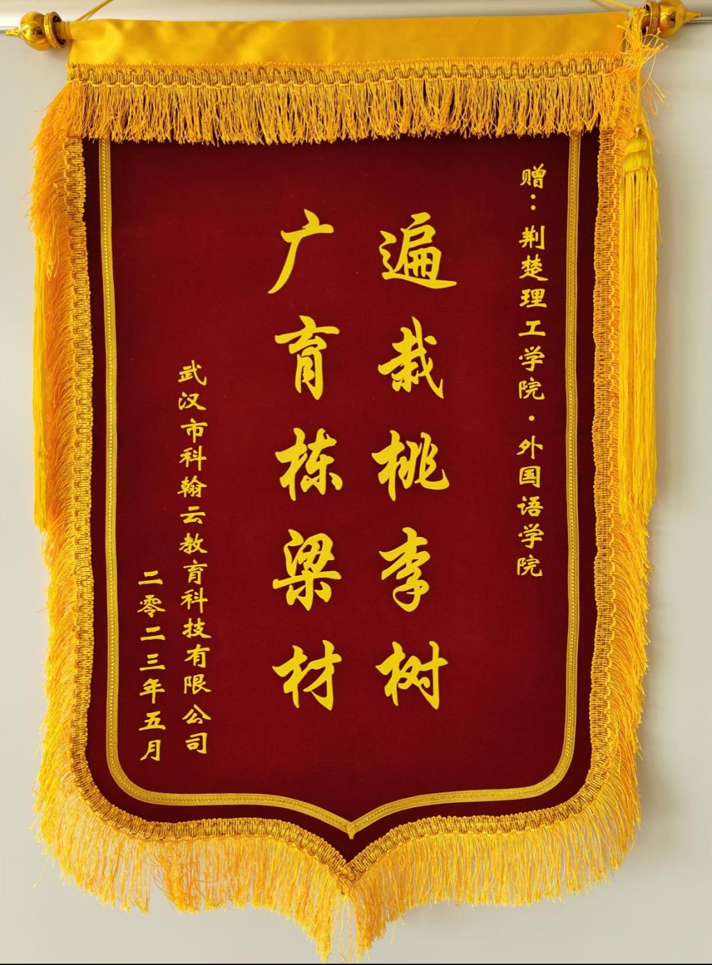 “遍栽桃李树,广育栋梁才”,武汉市科翰云教育科技有限公司5月23日为公司送来锦旗。在本次校园春季招聘会中,公司已有9名毕业生与该公司签约。