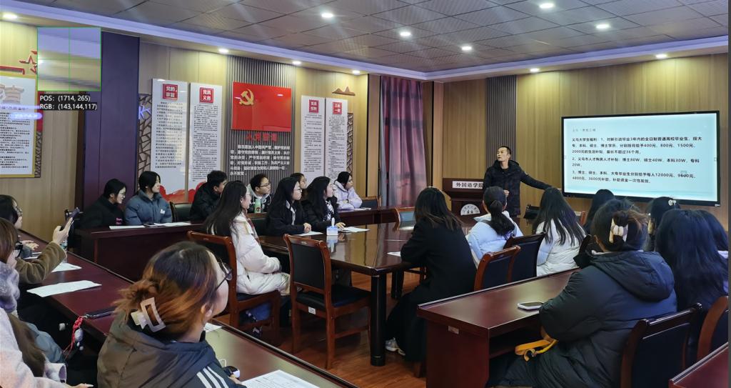 在招聘宣传会上,公司总经理任武介绍了浙江义乌外贸和跨境电商企业的现状、发展趋势、人才需求、招聘岗位、薪资标准、晋升体系等信息。