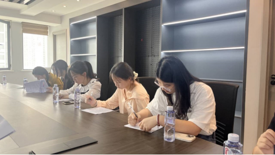 王玥一行前往新视野教育总部进行实地调研,通过实地走访、设施观摩及座谈交流,与机构负责人王鹏董事长就人才联合培养、实习就业基地共建等校企长效合作机制展开深度磋商。校企双方达成共识后,王鹏就同学们重点关注的行业发展现状、工资福利待遇和工作时间安排等方面做了重点讲述。随后,该机构当即面向调研团队开启“人才直通车”,现场举行英语公司产品能力笔试测验,随行员工表示,本次招聘企业诚意十足,期待留在新视野教育。