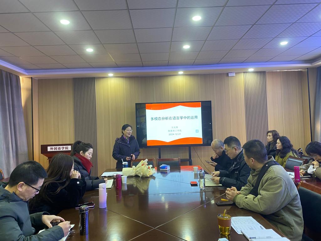 万光荣教授在为期两天的工作坊中,主讲了三场内容丰富的讲座,主题包括“多模态分析在语言学中的应用”、“科学问题与知识体系构建”以及“论文写作技巧与策略——以学科英语为例”。在每个环节,与会老师参与主题发言讨论和深度交流,也讨论“本子”的修改。