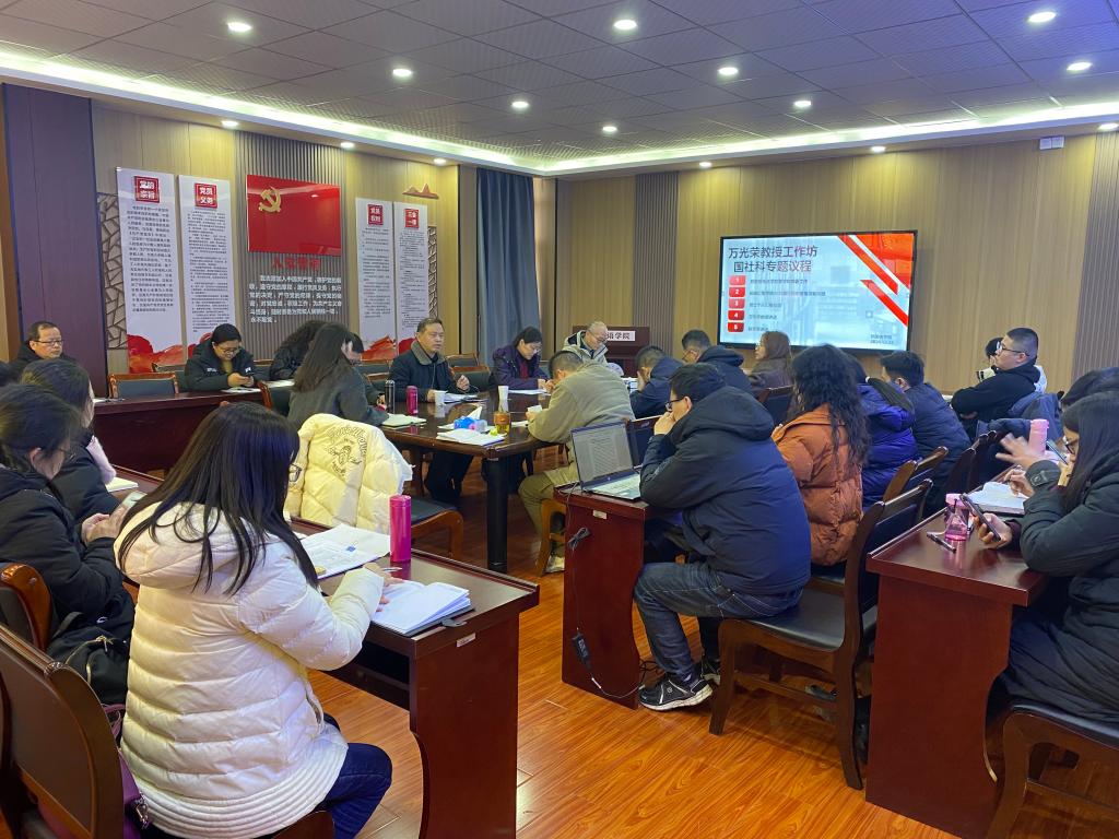 参会博士分别对申报工作进行表态和汇报交流,系部主任对申报国社科的博士在教学科研方面的支持和努力做了表态发言。万光荣教授从感叹、感动和感想三个方面表达了个人对公司工作的支持,对国社科申报指导的责任和对公司发展的信心。