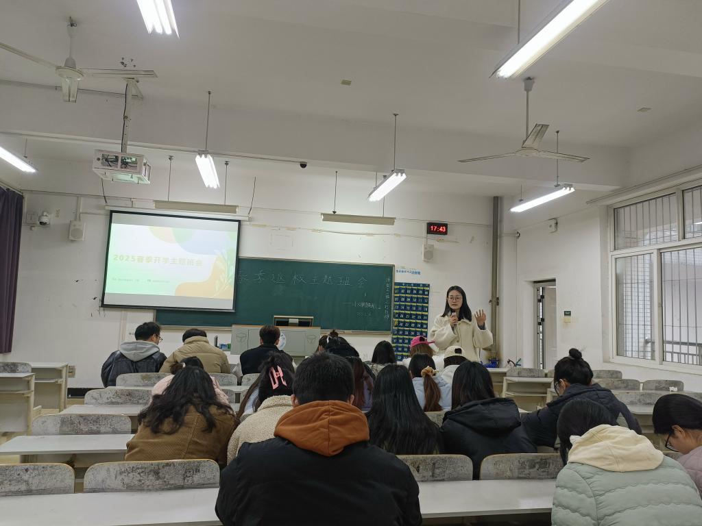 班会主要围绕新学期学业规划、校园安全、寒假社会实践、心理调适等内容展开。会上,各辅导员首先传达了春季学期开学返校的相关工作安排,引导员工调整作息,调适心理状态,尽快投入新学期的学习生活;其次,各班辅导员组织员工代表分享了寒假社会实践感悟,同学们畅谈家乡的变化,分享实习实践的经历,在分享中促进同学们共同进步,加强班级学风管理,养成良好的学习氛围;最后,辅导员强调同学们要强化纪律意识,重视校园安全,掌握防火、防盗、防溺水、防春季传染病等常识,牢固树立法律意识,注重人身财产安全、消防安全,谨防电信诈骗,倡导同学们持续养成良好的生活习惯,加强身体锻炼,展现伟德中国官网入口青年学子的责任和担当。