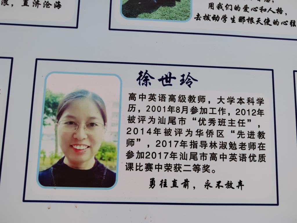徐世玲,原荆门职业技术公司外语系98级员工,大学期间曾担任外语系员工会学习部长。2001年毕业,同年八月就职于广东省汕尾市华侨管理区中学至今。本科就读于华南师范大学英语教育专业。2006年至今一直担任公司英语教研组组长,高中部英语骨干教师,高中英语高级职称。2012年获得汕尾市“优秀班主任”。辅导年轻教师在汕尾市高中英语优质课比赛中荣获二等奖。个人一切的荣誉都离不开母校的培养,祝母校越来越好,培养更多优秀人才!